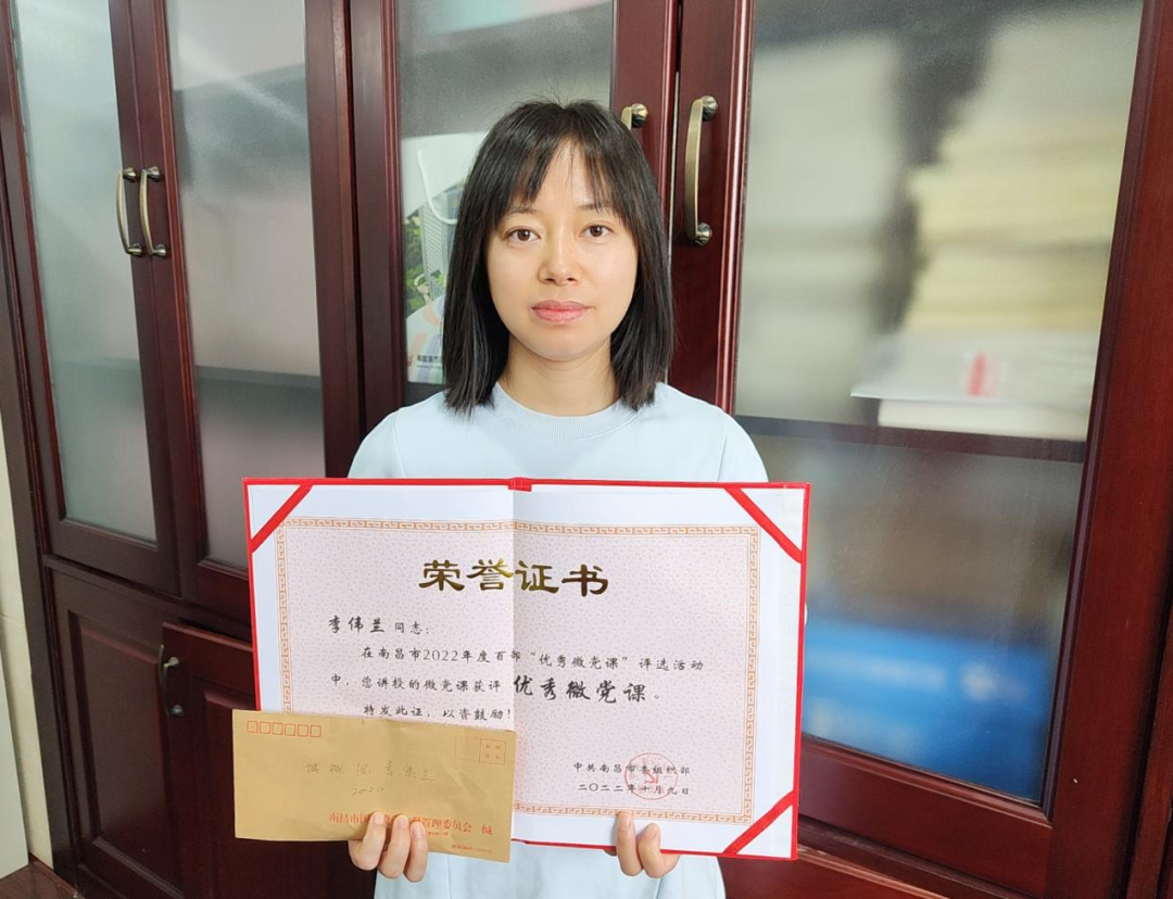 主講人李偉蘭獲得市委組織部頒發(fā)的榮譽證書及獎金