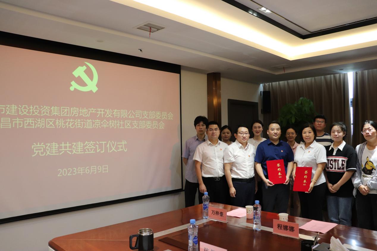 為積極探索創(chuàng)新黨建工作新模式,探索聯(lián)合黨建新路徑,努力形成組織共建、資源共享、發(fā)展共商的黨建工作新局面,6月9日,南昌市建設(shè)投資集團(tuán)房地產(chǎn)開發(fā)有限公司黨支部與南昌市西湖區(qū)桃花街道涼傘樹社區(qū)黨支部舉行了黨建共建簽約儀式。公司黨支部委員、總經(jīng)理萬勇林,黨支部委員、副總經(jīng)理何強科,總經(jīng)理助理吳瑞雪、技術(shù)顧問陳保福出席,雙方單位共16名黨員參加。