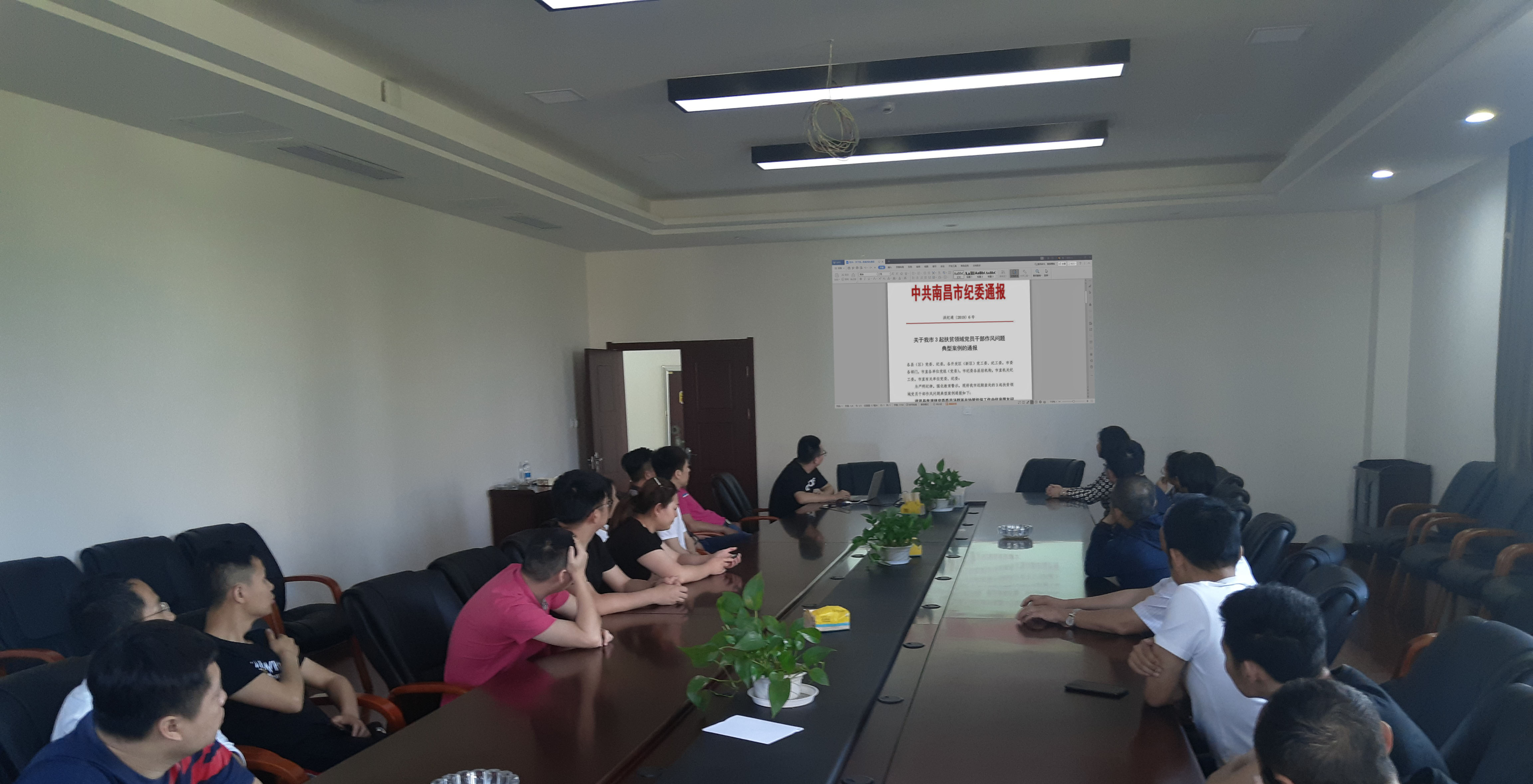 根據(jù)集團紀委有關(guān)文件通知,為深入貫徹落實全面從嚴治黨要求,切實增強黨員干部遵規(guī)守矩意識,7月23日上午,基礎(chǔ)公司紀檢監(jiān)察室組織全體干部職工召開會議,集中學(xué)習(xí)中共南昌市紀委通報文件。