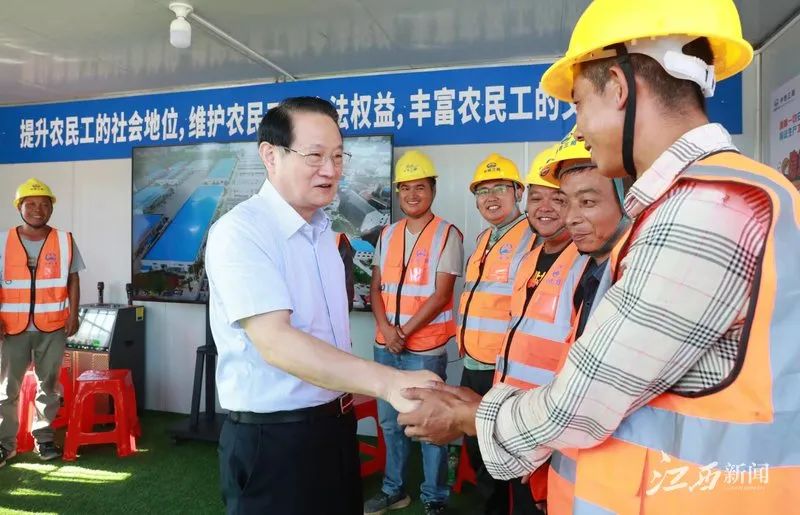 赤日炎炎,南昌洪騰高架項(xiàng)目現(xiàn)場(chǎng)一派繁忙,工程車來(lái)回進(jìn)行路面瀝青攤鋪,工人們正在揮汗如雨作業(yè)。易煉紅來(lái)到工地現(xiàn)場(chǎng),向一線建設(shè)者們致以問(wèn)候,感謝他們?yōu)槟喜鞘薪ㄔO(shè)作出的貢獻(xiàn)。他說(shuō),南昌是英雄城。大家來(lái)自全國(guó)各地,頂著烈日、不懼“烤”驗(yàn),揮灑的每一滴汗水、付出的每一份辛勤都是在為英雄城南昌的建設(shè)發(fā)展添油助力,你們是光榮的勞動(dòng)者,也是在高溫下戰(zhàn)斗的“英雄”。易煉紅反復(fù)叮囑大家要保重身體,采取有效措施防暑降溫,注意自我防護(hù)、勞逸結(jié)合,以健康的身體投入緊張的工作。在現(xiàn)場(chǎng),易煉紅還聽取了項(xiàng)目有關(guān)情況介紹,要求在確保質(zhì)量和安全的前提下,加快推進(jìn)項(xiàng)目建設(shè),確保早日建成通車。