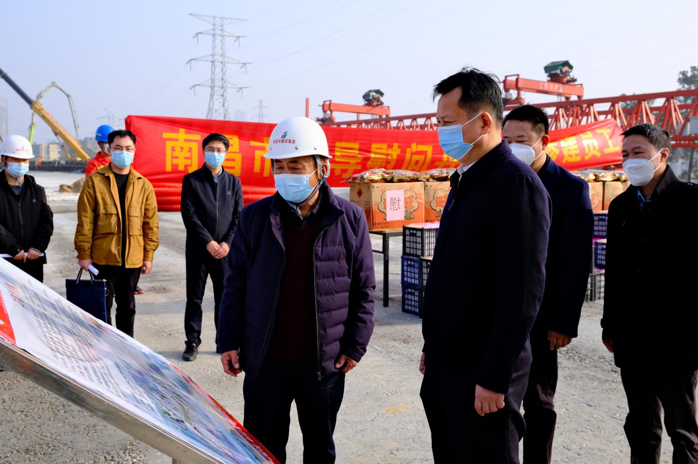 春節(jié)來臨之際,1月10日下午,市委常委、副市長肖云走訪慰問丹霞路道路及綜合管廊項目現(xiàn)場一線工人,并察看項目建設進展情況,市公建中心主任熊偉、市住建局副局長池建林、市建投集團副總經(jīng)理羅輝陪同。